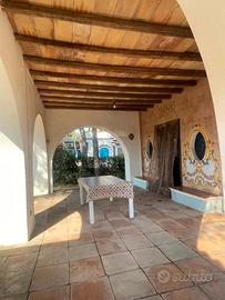 Villa con ampio giardino a venti metri dal mare dotata di 2 camere de letto, cucina, salotto interno e patio esterno