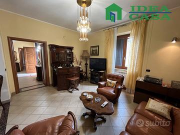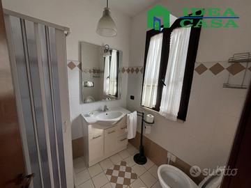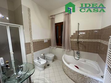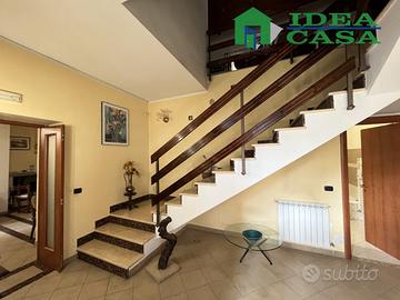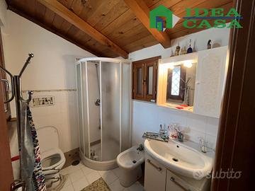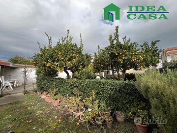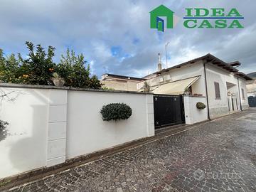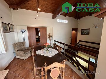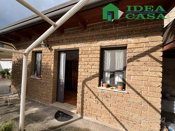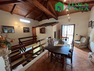 Rifinita villa con materiali di prestigio su unico livello più un sottotetto praticabile. Doppio ingresso con piccolo accesso pedonale esterno di proprietà della villa, ampio disimpegno interno che immette nella zona giorno con doppio salone con termo camino a vista e cucina. Zona notte due ampie camere da letto, bagno patronale con vasca ad angolo e doccia. Piano sottotetto: tre camere da letto studio e bagno strutturato sulle scale con affaccio all'ingresso. Rifiniture di marmo con tagli particolari, mosaici e copertura del sottotetto in legno lamellare. Dispone di: condizionatori, antifurto, blindature esterne infissi in legno e zanzariere. Esternamente: giardino e cortile di 270mq con dependance di 55mq, forno e bagno esterno.