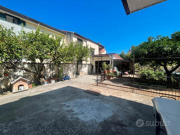 La proprietà è circondata da uno spazio esterno di 360 mq che include giardino, orto e un garage di 27 mq.
