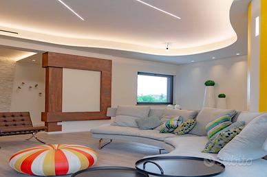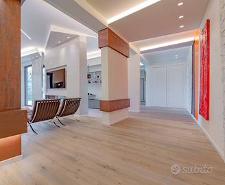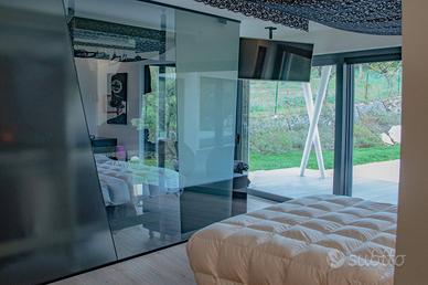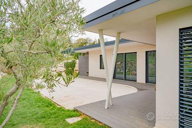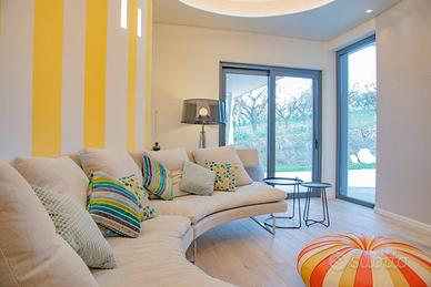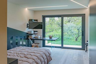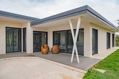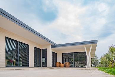 L'Immobiliare Unika propone in esclusiva di vendita nel Comune di Fermo (FM), in posizione panoramica, immersa nelle affascinanti colline fermane, splendida villa realizzata con eccellente e ricercata architettura di circa 300 mq con grandi spazi esterni a servizio di tutti gli ambienti. Trattasi di una rara soluzione abitativa che si compone di ambienti interni raffinati e funzionali con ampio soggiorno all'ingresso, sala da pranzo con cucina a vista e studio. Proseguendo nella zona notte troviamo il disimpegno che comprende una grande camera padronale con cabina armadio e bagno interno privato, ulteriori due camere e bagno finestrato. Scendendo al piano interrato troviamo una comoda lavanderia ben organizzata e un bagno con finestra. Completa la proprietà un ampio garage, che comprende due posti auto, La proprietà gode di un giardino dotato di bosco verticale per piante aromatiche, completo di vasca idromassaggio con vista mare, e di un lastrico solare di grande fascino e potenziale di circa 120 mq, attualmente non attrezzato, che può trasformarsi in un raffinato solarium con vista, area relax o terrazza panoramica privata, ideale per chi desidera personalizzare e ampliare gli spazi esterni. La soluzione è dotata di impianti di altissima efficienza energetica e sistemi di automazione di ultima generazione, riscaldamento e raffrescamento a pavimento, sistema di ventilazione meccanizzata controllata, domotica avanzata con gestione touch screen di illuminazione, temperatura e frangisole orientabili, placche luce touch screen nella zona giorno, impianto di aspirazione centralizzato, impianto di allarme volumetrico e perimetrale con sensori laser integrati negli infissi e vasca di raccolta per l'acqua piovana, utile per l'irrigazione del giardino. L'immobile è il risultato di un progetto costruttivo all'avanguardia con fondazioni e piano interrato in cemento armato, struttura in elevazione in legno con sistema X-Lam, cappotto termico in lana di...
