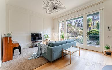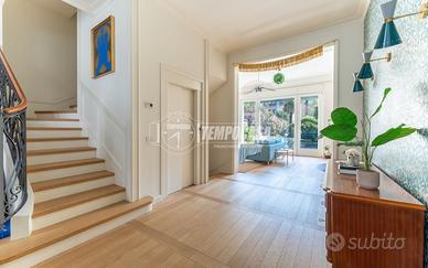 Nel cuore vibrante di Porta Venezia, dove il fascino dell'architettura storica incontra l'energia contemporanea, si cela una residenza di rara esclusività: una villa completamente ristrutturata, impreziosita da un incantevole spazio esterno privato. Varcando la soglia, la luce naturale diventa protagonista, accompagnando lo sguardo verso il vero gioiello della casa: il giardino. Un'oasi verde, intima e silenziosa, capace di regalare una dimensione di pace inaspettata nel cuore della città. Qui il tempo sembra rallentare, tra profumi, quiete e privacy assoluta. Il terrazzo, affacciato sul verde, si trasforma in un elegante prolungamento della zona living: il luogo perfetto per colazioni immerse nella luce del mattino, aperitivi al tramonto e serate sotto le stelle. La zona giorno, ampia e raffinata, si apre in continuità con l'esterno, creando un dialogo armonioso tra interno ed esterno. Gli ambienti, luminosi e ben proporzionati, sono pensati per offrire un'esperienza abitativa di grande comfort ed eleganza. Completa il piano uno studio riservato, ideale per lavorare in un'atmosfera tranquilla e ispirante. A collegare i diversi livelli, oltre alla scala interna, un comodo ascensore privato che aggiunge funzionalità e discrezione alla quotidianità. La taverna ospita una cucina sorprendentemente luminosa, con accesso diretto al giardino: uno spazio conviviale, perfetto per vivere momenti autentici e condivisi, tra pranzi all'aperto e atmosfere rilassate. Il piano è completato da bagno e ampia lavanderia. Al primo piano si sviluppa la zona notte principale, con una raffinata master bedroom dotata di cabina armadio e bagno en suite, affiancata da una seconda camera anch'essa con bagno privato, pensata per garantire comfort e indipendenza. All'ultimo livello, due suggestive camere mansardate illuminate da velux automat - Classe: D - IPE: 101.01 kWh/mq anno