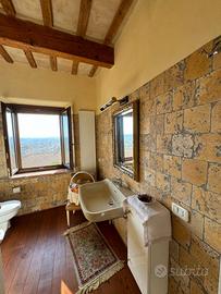 Rif: VV268 Classe energetica: E - EPglnr: 224.99 kWh/m² L'Immobiliare Unika propone in vendita nel Comune di Montegranaro (FM), nelle mura di cinta del centro storico, adiacente alla storica Chiesa dei Santi Filippo e Giacomo e "Cripta Sant'Ugo", rara soluzione immobiliare disposta su più livelli di circa 352 mq di recente ristrutturazione totale con corte a servizio e vista panoramica, inserita in contesto storico caratteristico. Trattasi di una struttura dotata di un doppio accesso su due livelli distinti che consentirebbe il frazionamento in due unità abitative indipendenti attualmente suddivisa in n° 4 ambienti indipendenti (bilocali/monolocali). L'immobile si compone al piano terra rialzato di ingresso, grande stanza pluriuso, soggiorno angolo cottura e bagno. Proseguendo al piano primo troviamo la seconda zona living con cucina a vista in muratura, due grandi camere matrimoniali e due bagni con cabina doccia. Al piano secondo servito dal secondo ingresso troviamo una zona giorno con sala e cucina, due camere e due bagni il tutto servito da uno splendido soppalco abitabile, attualmente suddiviso in studio e lavanderia attrezzata. Completano la proprietà corte esclusiva pavimentata e attrezzata e tipiche grotte romane complete di pozzo attivo con pompa per il recupero di acqua poste al piano seminterrato, caratterizzate da archi di stile gotico. La soluzione, unica nel suo genere, gode di una splendida vista su mare e monte Sibillini ed è dotata di mattoni faccia vista esternamente, ristrutturata con materiali ricercati e finiture di pregio che mantengono le caratteristiche d'epoca, con splendide travi a vista in legno di quercia, pannelli radianti, riscaldamento a pavimenti, stufa a legno, portone blindato, zanzariere, infissi nuovi in massello con doppi vetri, caldaia nuova. L'immobile è servito da comodi posti auto pubblici, nonostante la posizione centrale, a poca distanza da tutti i servizi. Ideali per due nuclei famigliari o per uso...