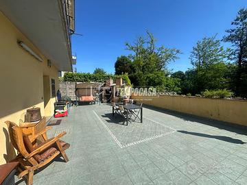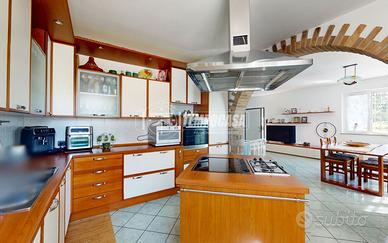 Dal soggiorno della taverna si accede direttamente a un grande terrazzo di circa 70 mq, attrezzato con forno esterno, ideale per pranzi all'aperto e serate in compagnia.