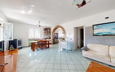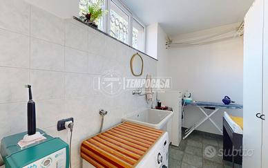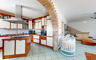 Al piano seminterrato, in parte completamente fuori terra, troviamo una luminosa zona taverna utilizzata come soggiorno dotato di stufa a pellet e una spaziosa zona pranzo, perfetta per momenti conviviali. Adiacente, la cucina abitabile offre spazi funzionali e ben distribuiti. Sempre su questo livello si trovano un bagno finestrato e una lavanderia.