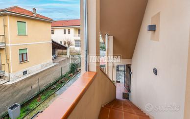 -Ingresso principale su luminoso e spazioso SALONE, impreziosito da una STUFA A PELLET e collegato al piano superiore tramite una raffinata scala in pietra di Luserna;