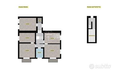Proseguendo al primo piano, l'abitazione offre una seconda cucina abitabile, un ulteriore soggiorno, due camere da letto e un altro bagno, ideale per chi necessita di spazi ben distribuiti. La proprietà dispone inoltre di una soffitta accessibile tramite scala interna, dove si trova una camera finestrata.