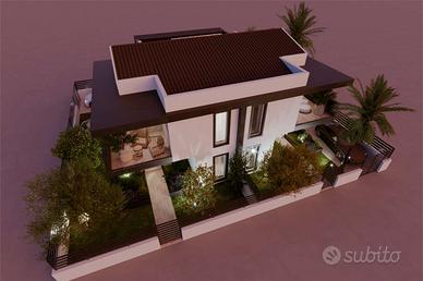 A ridosso della residenziale zona di Monreale, in una traversa di Via Tamburino Sardo, frequentata dei soli residenti ma al contempo vicina a tutti i principali servizi quali supermercati, poste e fermate dell'autobus urbano, proponiamo in vendita un'elegante villa bifamiliare di nuova costruzione.