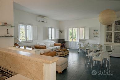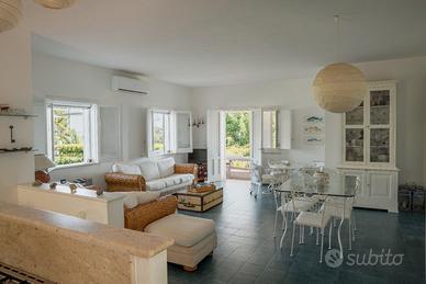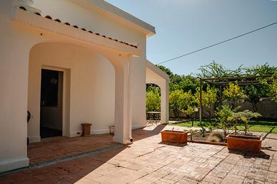 La proprietà si sviluppa interamente su un unico livello, pensata per garantire la massima vivibilità degli spazi. L'ingresso si apre su una luminosa zona living composta da un ampio salone doppio con angolo cottura a vista: un ambiente conviviale e accogliente, ideale per trascorrere momenti in famiglia o con gli amici. La zona notte è ben distinta e composta da due spaziose camere matrimoniali, di cui una con bagno en suite, una cameretta, un secondo bagno completo di doccia, oltre a ripostiglio e lavanderia. La villa è dotata di aria condizionata e ventilatori a soffitto, a garanzia di comfort in ogni stagione.
