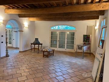pochi minuti dal Centro Commerciale ESP, immersa nella tranquillità di un parco privato di oltre 10.000 mq, proponiamo una residenza unica nel suo genere, caratterizzata da spazi ampi, travi a vista e ambienti di grande impatto. L'immobile, di circa 400 mq, si sviluppa all'interno di una villa e offre ambienti di rappresentanza difficili da trovare sul mercato. La proprietà si distingue per: ampi saloni con travi a vista e soffitti alti ambienti architettonici di grande carattere (archi, colonne, camino) zona notte completamente rifinita con pavimentazione in legno bagni realizzati con materiali di qualità, tra cui travertino romano Il contesto garantisce privacy assoluta, grazie al parco privato recintato di oltre 10.000 mq.