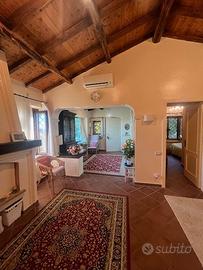 Palestrina proponiamo in vendita villa unifamiliare su un unico livello composto da ampio ingresso, salone con camino , cucina abitabile, 2 camere con cabina armadio e 2 bagni. Cantina. Completa la proprietà un meraviglioso parco di 9.000 mq . Per quanto riguarda i servizi troviamo acqua diretta, pozzo,gas bombolone e allaccio in pubblica fognatura . L'immobile gode di un ottima posizione vicino al centro del paese e vicino a tutti i servizi , La villa beneficia di una posizione dominante e molto panoramica . L'IMMOBILE NON E' MUTUABILE PERCHE' E' UN C/2 SIA CATASTALMENTE CHE URBANISTICAMENTE.