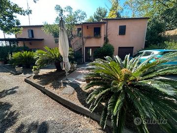 Villa con piscina in Vendita - Immersa nella Natura Scopri questa particolare soluzione indipendente che dispone di una metratura di mq 275, situata in una zona tranquilla ed immersa nella natura. La proprietà articolata su due livelli è circondata dall'autentico paesaggio marchigiano, adornato da ulivi e vigneti. Il terreno di 3000 mq include una piscina all'aperto con vista sul verde, ideale per rilassarsi e godersi la bellezza del panorama. Al piano terra, troverai un'ampia zona living che offre un'atmosfera di relax e convivialità, una cucina e un bagno di servizio. Attraverso una scala interna si accede al piano primo che si apre su un luminoso soggiorno, due camere da letto matrimoniali dotate di doppi servizi con doccia. Inoltre esiste anche la possibilità di ricavare una terza camera da letto, adattando la casa alle tue esigenze. All'esterno, un vialetto curato con cancello elettronico - che limita l'accesso alla via ai soli residenti e garantisce privacy e soprattutto sicurezza - conduce alla proprietà, che include anche uno spazioso ripostiglio esterno e una zona per mangiare all'aperto con gazebo. Gli accessi separati tra i due piani offrono flessibilità e indipendenza, inoltre le dimensioni vivibili e ben sfruttabili degli ambienti rendono questa unità abitativa unica nel suo genere. La soluzione inoltre si caratterizza per la caldaia nuova del 2021, pavimenti in monocottura e gres porcellanato e persiane in legno. Questa villa è ideale per clienti alla ricerca di una soluzione abitativa indipendente e definitiva, in particolare famiglie con bambini, animali e amanti del giardino, che desiderano vivere in un ambiente riservato. L'ubicazione è strategica in quanto in contesto privato e tranquillo ma accessibile in pochi minuti in auto ai servizi principali: - negozi alimentari km 1,9 - farmacie km 2 - scuole km 1,8 - poste km 2,1 Questa proprietà è molto più di una casa, è un'elegante dichiarazione di stile e classe. Non perdere l'opportunità di
