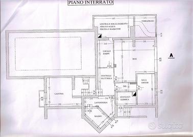 Descrizione: Villa unifamiliare disposta su 3 piani fuori terra oltre ad un piano seminterrato con locale autorimessa, vano depuratore piscina, cantina, bagno con annessa lavanderia, caldaia e relativi disimpegni al piano seminterrato. Piano terra: ingresso, soggiorno con annessi sala da pranzo e cucina, servizio, piscina coperta con relativi doccia e spogliatoi al piano terra. Primo piano: 4 locali, studio, disimpegno in balconata sul soggiorno oltre i servizi e due vani ripostiglio. Piano sottotetto: solaio e servizio. Il tutto collegato da scala interna con ascensore annesso.