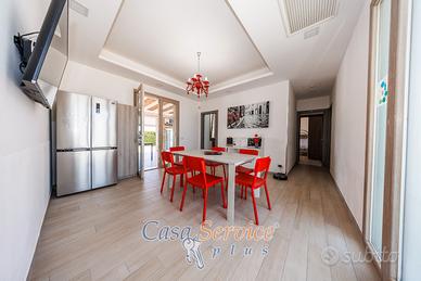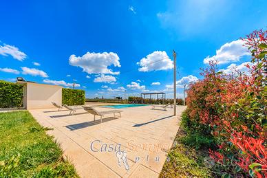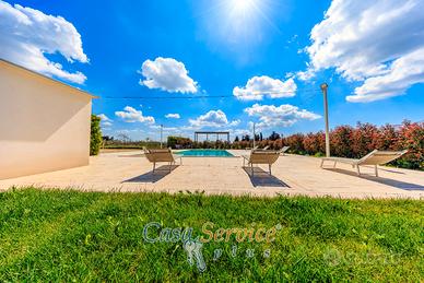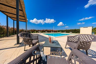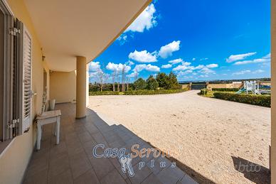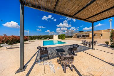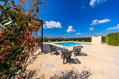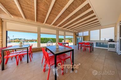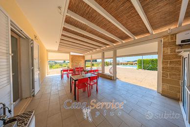Proponiamo in vendita, esclusiva villa di recente costruzione, immersa nella tranquillità della campagna salentina, a soli 6 minuti dalle spiagge di Gallipoli - Baia Verde. La proprietà si sviluppa su un unico livello per una superficie di circa 185 mq, circondata da un ampio terreno privato, ideale per chi cerca privacy, comfort e contatto con la natura. La villa è composta da: Ampia e luminosa zona living. Cucina abitabile. 4 camere da letto. 4 bagni. Completano la proprietà balcone e terrazzo, perfetti per vivere appieno gli spazi esterni. Spazi esterni e terreno: Piscina privata 10 x 5 metri con concessione comunale. Area solarium attrezzata. Veranda coperta per pranzi e cene all'aperto. Doccia esterna. Uliveto con impianto di irrigazione. Frutteto e vari alberi ornamentali. Recinzione in carparo salentino con siepi e pini tuia. Ampio piazzale con parcheggio fino a 10 auto. Cancello automatico. Dotazioni e comfort: Impianto fotovoltaico da 7 kW con accumulo da 5 kW. Acqua calda con solare termico. Climatizzazione centralizzata ad alimentazione elettrica. Infissi in PVC-alluminio. Impianto di allarme antifurto. Videosorveglianza. Predisposizione per termocamino. Ottima efficienza energetica (Classe B) Immobile nuovo, pronto all'uso. Dati principali: Superficie villa: 185 mq circa. Terreno: 10.000 mq circa. Locali: 5+ Camere: 4 Bagni: 4 Piano: Rialzato. Posti auto: 10. Stato: Nuovo Anno di costruzione: 2020 Classe energetica: B Posizione: Situata in zona riservata ma ben collegata, la villa dista pochi minuti da Gallipoli e dalle sue rinomate spiagge, offrendo il perfetto equilibrio tra relax e vicinanza ai servizi. Ideale per: residenza principale di prestigio. Casa vacanze. Investimento per affitti brevi / struttura ricettiva. Prezzo: € 698.000 Rif.: ALCO-698 Contatti: Per maggiori informazioni o per prenotare una visita: Numero verde gratuito: Cellulare: