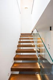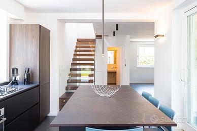Una scala elegante conduce al primo piano, interamente dedicato alla zona notte, dove trovano spazio tre camere da letto e due bagni, tutti caratterizzati da finiture di pregio e grande luminosità.