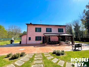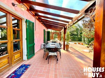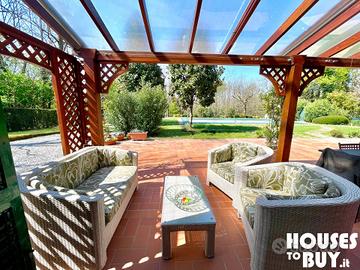 Perché comprarla? *3.000 m² di proprietà, 195 m² la casa, 30 m² la dependance, 72 m² la piscina *Ristrutturata e arredata, riscaldamento e raffreddamento con impianto a pannelli solari *Privacy e tranquillità a due passi da tutto, dal mare, dalla collina e dalla città La proprietà: la villa si trova all'interno di una riserva naturale, copre un'area di 3.000 m² al cui interno troviamo un bellissimo parco molto curato con piante e fiori, la casa disposta su due livelli, la grande piscina e una dependance. La casa è stata ristrutturata e dotata di impianti a pannelli solari per riscaldamento e raffreddamento, al piano terra si sviluppa la zona giorno con l'ingresso in un grande salone, separata da una parete a tre archi una cucina aperta attrezzata e ben organizzata adornata da uno splendido camino, e un bagno. Attraverso la scala di legno massello si sale al piano superiore dove si dispone di un secondo bagno e tre camere da letto di cui quella padronale con cabina armadio. Il patio con salottino esterno accompagna l'uscita verso la piscina. In fondo al parco vi è una dependance per gli ospiti con area giorno / notte, cucina e bagno. Tutto il perimetro dell'area è controllato da impianto di allarme monitorato a distanza. L'area e i collegamenti: la villa è ben collegata con la via Lucchese Romana, la si raggiunge in 5 minuti di macchina dall'uscita Altopascio-Autostrada A11. Si trova a 20 km da Lucca, a 40 km da Pisa, a 50 km da Viareggio e a 70 km da Firenze.