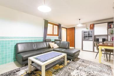 Il piano seminterrato è suddiviso in due zone, la prima con accesso dalla zona living principale e dal cortile con un'ulteriore zona giorno con cucina e penisola, dispensa e bagno;