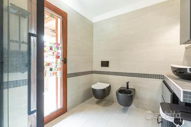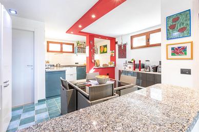 La seconda, indipendente dal resto della casa, ideale per gli ospiti, con accesso da una scala esterna dove troviamo un ulteriore cucina e due camere da letto entrambe dotate di bagno padronale.