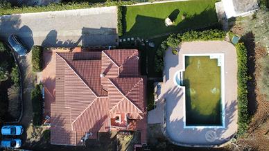 Nel suggestivo agro di Filigheddu, a pochi minuti d'auto dal centro di Sassari e su strada comodamente servita dai mezzi pubblici, questa meravigliosa villa indipendente con terreno e piscina ti offre un angolo di paradiso a portata di mano. Costruita nei primi anni 2000, la villa si sviluppa su una superficie interna di circa 160 mq, caratterizzata da ampi spazi e una disposizione che garantisce il massimo del comfort. Il grande patio esterno conduce all'ingresso della casa, dove si apre un luminoso soggiorno con camino. La cucina abitabile, accogliente e funzionale, si collega a una spaziosa veranda coperta, ideale per momenti di relax e convivialità. Il piano principale è completato da un bagno con box doccia. Al piano sfalsato si trova la zona notte, composta da due camere da letto e un secondo bagno con vasca. Al piano superiore, accessibile tramite una scala esterna, si trova una splendida stanza panoramica con vetrate, che regala una vista unica sulla campagna circostante. La proprietà è immersa in un terreno di circa 2000 mq, dove si trova una grande piscina di circa 70 mq, circondata da un ampio patio. Una parte del giardino è rifinita con prato inglese, mentre la restante zona è arricchita da piante da frutto e agrumi, per un'atmosfera naturale e rilassante. L'immobile è dotato di riscaldamento autonomo con radiatori a gas, pozzo e fossa settica. La villa che hai sempre sognato è ora disponibile per l'acquisto.