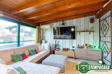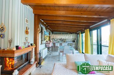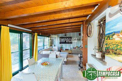 Al piano terra troviamo : disimpegno ingresso, camera da letto, servizio con box doccia e cucina abitabile con accesso diretto alla SPLENDIDA VERANDA di 40MQ composta da cucina e grazioso CAMINO.