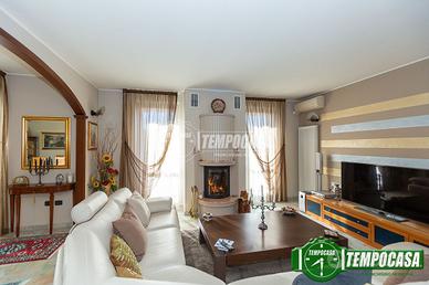 Al piano superiore troviamo ; doppio soggiorno luminoso con CAMINO e doppio accesso al BALCONE, ampio servizio con vasca e due camere matrimoniali.