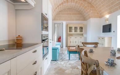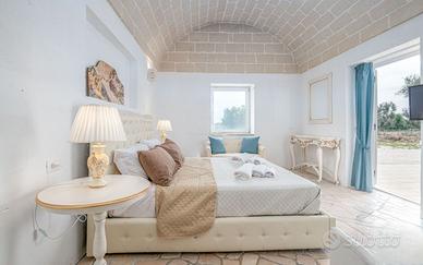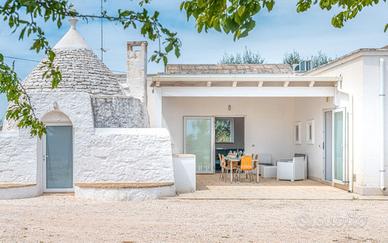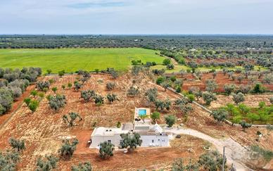 Vendesi villa con piscina e trullo - Puglia (tra San Vito dei Normanni e San Michele Salentino) Splendida villa con piscina di 40 mq immersa nella campagna pugliese, frutto dell'ampliamento di un trullo originale con caminetto e volte in pietra a vista. L'immobile dispone di 4 camere da letto, 4 bagni, soggiorno con cucina a vista e salotto. Gli ambienti sono indipendenti e in parte con accessi separati, ideali per privacy o attività ricettiva. Presenti anche pergolati, forno a legna, stufa a legna e ampi spazi esterni vivibili. Terreno completamente recintato con uliveto (circa 250 piante), frutteto e fichi d'India. Dotata di aria condizionata, impianto d'allarme, pannelli solari termici, pozzo artesiano e cancello automatico. Posizione strategica: 15 min dal mare, 15 min da Ostuni, 25 min dall'aeroporto di Brindisi. Perfetta come abitazione privata o struttura ricettiva (B&B/casa vacanze).