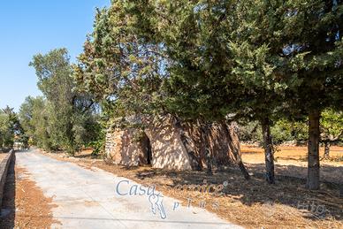 L'accesso alla proprietà avviene tramite un cancello privato che si apre su un viale alberato, regalando sin da subito una sensazione di riservatezza e accoglienza. Completa la struttura anche un trullo di pertinenza, affascinante elemento architettonico tipico del territorio, che aggiunge valore e autenticità all'immobile.