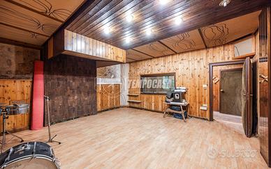 Gli spazi dell'abitazione si dividono tra un ampio soggiorno che affaccia su un portico angolare perfetto per lo spazio conviviale , cucina semi abitabile , 3 camere da letto e ampia mansarda. Una delle particolarità piu affascinanti di questa proprietà è lo studio di 80 mq collegato direttamente all'abitazione (ad uso ufficio) , dove possiamo raccontare letteralmente un pezzo di storia della musica leggera italiana.