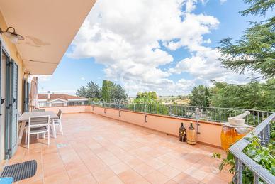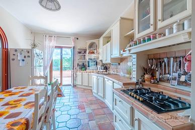 L'appartamento principale si estende su una superficie interna di circa 240 metri quadri e vanta un ingresso privato esclusivo. É composto da 3 camere da letto, una stanza ufficio, una cucina in muratura ben attrezzata, 3 bagni, 2 ripostigli, 2 verande panoramiche di circa 40 metri quadri e un balcone, dove poter godere di momenti di relax con vista. Caratteriste principali di tale appartamento sono impianto di allarme, doppi vetri, persiane in alluminio, infissi in legno e alluminio, aria condizionata, riscaldamento a pavimento su tutta la superficie, due camini presenti in cucina e soggiorno, videocitofono e parquet.