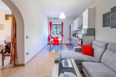 Il secondo appartamento, dotato di ingresso autonomo, offre una cucina semi open plan, 2 camere da letto, 2 bagni e una veranda esterna, rendendolo l'ideale per famiglie o per un .