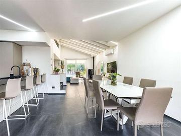In una posizione privilegiata, a pochi passi dalle rive del suggestivo Lago di Comabbio, proponiamo unelegante villa recentemente ristrutturata, situata a Corgeno, frazione di Vergiate, allinterno di un contesto residenziale riservato e silenzioso, perfetto per chi desidera tranquillità senza rinunciare alla vicinanza ai servizi. La proprietà si sviluppa su due livelli, entrambi dotati di ingresso indipendente, offrendo massima flessibilità abitativa. Al piano terra lingresso conduce a un piacevole portico affacciato sul giardino, ideale come spazio di accoglienza. Sul retro, la cucina si apre su un secondo portico, pensato per pranzi e cene allaperto o momenti di relax immersi nel verde. Un pratico soppalco ospita un angolo studio riservato con accesso al sottotetto, utilizzabile come comodo spazio di deposito. Completano il piano tre camere da letto e due bagni finemente rifiniti, di cui uno a servizio esclusivo della camera padronale. Il piano semi-interrato, collegato internamente ma dotato anche di accesso esterno autonomo, accoglie ambienti ampi e versatili: due camere, un bagno, una zona giorno con cucina e un ripostiglio ricavato nel sottoscala, ideali per creare una seconda unità abitativa indipendente. Sono inoltre presenti una lavanderia e un locale tecnico esterno. Il giardino, fruibile da entrambi i livelli, rappresenta unoasi di privacy e verde, perfetta per godere appieno degli spazi esterni. La villa è dotata di soluzioni moderne pensate per il massimo comfort: illuminazione a LED, grandi superfici vetrate, ventilazione meccanica nel piano interrato e impianto di climatizzazione in tutti gli ambienti. Completano la proprietà un box singolo e tre posti auto RIFERIMENTO: CORGENO CLASSE ENERGETICA: E 122 kWh/m2 a
