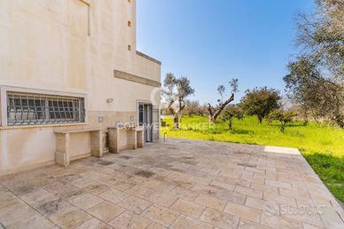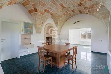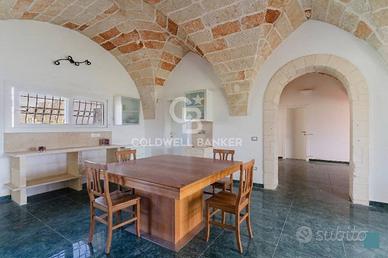 Rif: CBI069-553-133102 Classe energetica: E - EPglnr: 202.77 kWh/m² CORIGLIANO D'OTRANTO Nel suggestivo scenario della campagna della Grecìa Salentina, precisamente nel comune di Corigliano d'Otranto, sorge questa incantevole dimora di circa 220 mq, con terrazzi per circa 133 mq e un terreno di un ettaro e mezzo. La proprietà è frutto di una ristrutturazione e ampliamento di un antico nucleo con volte a stella eseguita nel 2019. La dimora è dotata quindi di tutti gli impianti nuovi ma ci avvolge con lo charme dei soffitti con pietra a vista che conferiscono eleganza e calore. La zona giorno si compone di un ampio soggiorno con camino, collegato a una spaziosa sala da pranzo e alla cucina, creando un ambiente ideale per la vita quotidiana e per accogliere gli ospiti. La zona notte, situata sullo stesso livello, ospita tre confortevoli camere da letto, ciascuna dotata di bagno en suite, di cui uno con vasca idromassaggio. Dal soggiorno, una scala conduce al piano superiore, dove si trova un'ulteriore camera da letto con bagno en suite e accesso diretto a due ampi terrazzi di circa 20 mq ciascuno, dai quali si gode una splendida vista panoramica a 360° sulla campagna salentina. Gli spazi esterni sono stati progettati anche per il tempo libero: è presente un bagno a servizio dell'area patio comodo in considerazione della possibilità di realizzare, eventualmente, una piscina. La villa si presenta in ottime condizioni ed è dotata di, impianto di allarme con servizio di vigilanza, impianto fotovoltaico da 4.5 kw, pozzo artesiano, fossa Imhoff e predisposizione per impianto di condizionamento. L'impianto di irrigazione, infine, facilita la manutenzione del verde. Questa residenza rappresenta la soluzione ideale per chi desidera una dimora indipendente immersa nella quiete e nella natura, senza rinunciare alla vicinanza ai principali servizi. La proprietà si trova infatti a breve distanza dal centro di Corigliano d'Otranto, affascinante borgo ricco di...