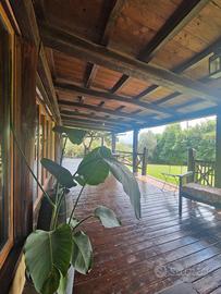 La villa unifamiliare è immersa nel verde, presenta uno stile country con l'utilizzo del legno sia per la parte della copertura che per le ampie zone destinate a portico, si sviluppa principalmente su di un unico livello, con al piano superiore una ampia camera da letto con bagno.