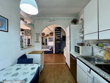 All'interno, la sala luminosa accoglie gli ospiti in un ambiente caldo e invitante, mentre la cucina è completa di tutto il necessario per preparare deliziosi pasti. Il bagno, rinnovato e finestrato, aggiunge un tocco di modernità alla casa. La zona notte, accessibile tramite una scala, è composta da due camere matrimoniali, entrambe dotate di finestre e armadi spaziosi, garantendo comfort e privacy. Inoltre, la zona notte è servita da aria climatizzata con pompa di calore, perfetta per le calde giornate estive.