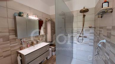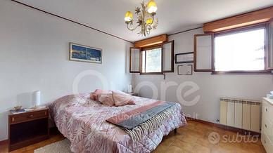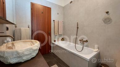 La zona notte comprende due camere matrimoniali, luminose e ben rifinite, e una terza stanza utilizzabile come studio o cabina armadio, secondo le esigenze. I due bagni finestrati, uno con doccia e laltro con vasca, offrono comfort moderni pur mantenendo lo stile sobrio della casa.