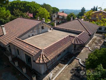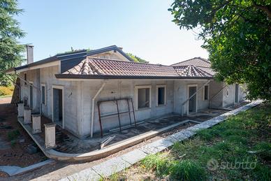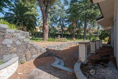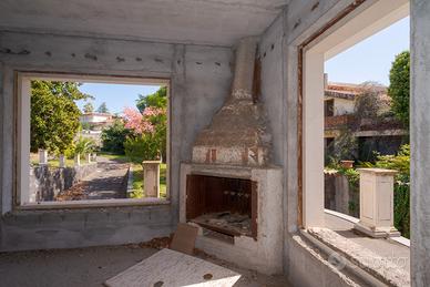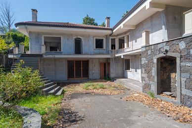 Trecastagni villa singola da completare composta da: piano terra salone con camino, studio, wc di rappresentanza, ampio disimpegno, due matrimoniali con wc in camera, lavanderia più altro wc, salone di due vani, grande cucina con ripostiglio; piano sottotetto di mq 104 circa composto da quattro vani più wc e ampio terrazzo; piano seminterrato salone con camino, wc, cantina con forno a legna, tre ripostigli, locale vasche e ampio garage, giardino di mq 3.000, 00 circa.