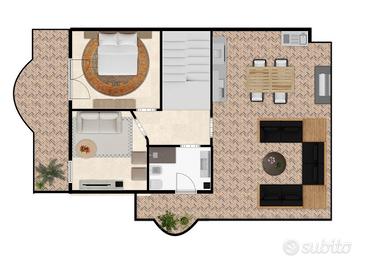 Infine al piano seminterrato non poteva mancare un comodo garage di circa 50 mq e una graziosa tavernetta in cui troviamo un comodo bagno, una cucina con giardino e una zona open.