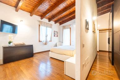 Al piano primo troviamo la zona notte, composta da tre camere da letto e due bagni, oltre la lavanderia. Il piano è caratterizzato da soffitti alti con travi in legno a vista che donano ampio respiro ad ogni ambiente.