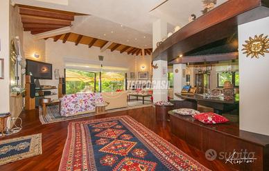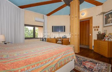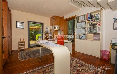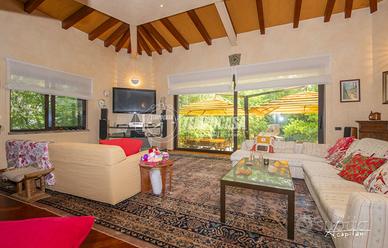 Il cuore pulsante della casa è l'immensa zona giorno, un ambiente arioso e raffinato. Qui, enormi porte-finestre incorniciano il rigoglioso giardino privato, invitando la luce e la bellezza del paesaggio a entrare in ogni angolo. La raffinatezza è sottolineata dalla continuità del pregiato parquet, che avvolge ogni ambiente con il suo calore e la sua eleganza senza tempo. In perfetta continuità con il soggiorno, troverai un ambiente aperto riservato a studio, ideale per chi cerca uno spazio di lavoro tranquillo o un angolo dedicato alla lettura e alla riflessione.