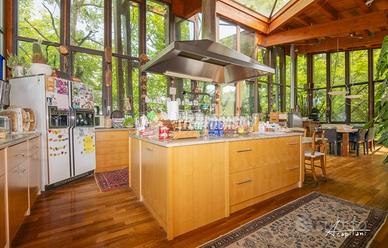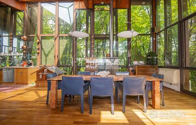 Ma la vera gemma è la cucina, un capolavoro di oltre 60 mq interamente realizzata in vetro. Qui, preparare i pasti si trasforma in un'esperienza sensoriale unica: ti sembrerà di mangiare immerso nel tuo bosco privato, con la natura che ti circonda in un abbraccio silenzioso e rigenerante. Un luogo dove ogni pasto diventa un momento di pura contemplazione e piacere.