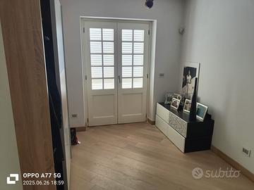 La zona notte, situata a destra, comprende una suite con bagno privato e cabina armadio, oltre a due spaziose camere da letto doppie e un secondo bagno.