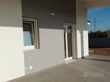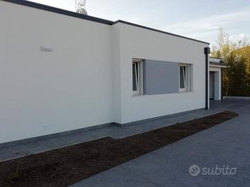Vi proponiamo una villa di pregio di circa 165 mq. calpestabili (classe energetica A4) su un lotto di 650 mq. sita nel quartiere di Torre (Pordenone) in una zona caratterizzata da nuove costruzioni. Il progetto nasce con l'intento di realizzare una dimora accogliente, dotata di molti confort tecnologici, sviluppata su un unico piano abitativo: zona giorno con cucina a vista che si affaccia sul portico esterno, disimpegno notte, due camere matrimoniali, una singola, due bagni, c.t., cantina, doppio garage. Ottimo il livello di costruzione sia per quanto riguarda la struttura, i materiali di finitura e l'impiantistica. Segnaliamo: grondaie e pluviali in alluminio, pavimenti in listoni di legno di rovere, serramenti in legno laccato bianco con doppio vetro-camera, tapparelle elettriche... Impianto elettrico: pannelli fotovoltaici per la produzione di energia elettrica (4,5 Kw). Riscaldamento: a pavimento con pompa di calore, produzione acqua calda mediante pompa di calore. Pavimentazione marciapiedi in piastrelle antigelive. Impianto di ventilazione meccanica controllata: l'aria viene cambiata in automatico senza aprire le finestre e disperdere energia. Grazie ad un sistema di ventole, l'aria interna viene espulsa e l'aria esterna filtrata viene immessa all'interno. Inoltre segnaliamo che una parete del bagno è stata lasciata libera da decorare a proprio piacimento magari seguendo la tendenza del momento che vede l'uso di nuove carte da parati che rendono esteticamente originale anche questa stanza. Ulteriori informazioni e trattative presso la sede dell'agenzia.