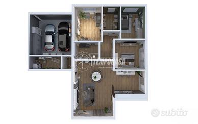 Attraverso il disimpegno si accede alla zona notte, ben distribuita e studiata per assicurare tranquillità e comfort. Troviamo una prima camera da letto con affaccio diretto sul giardino, perfetta anche come studio o camera ospiti, e un primo bagno finestrato. Proseguendo, sono presenti altre due camere da letto di generose dimensioni, servite da un secondo bagno. Completa la zona interna una comoda lavanderia con ripostiglio, pratica e funzionale per la gestione quotidiana della casa.
