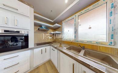 Gli interni offrono ambienti ampi e luminosi: un soggiorno di circa 50 mq con cucina in muratura, completa di elettrodomestici di ultima generazione e mobilia in rovere massello, tre camere da letto matrimoniali e tre bagni.