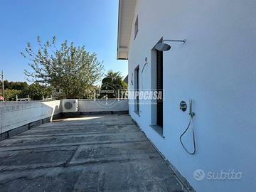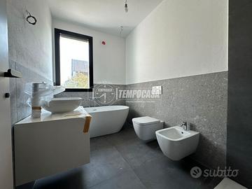 Al piano terra, l'ampia area giorno accoglie famiglia e ospiti con un luminoso soggiorno e una cucina a vista, il tutto arricchito da finestrature che permettono un'abbondante entrata di luce naturale. Un primo bagno aggiunge praticità a questo livello, garantendo comfort e funzionalità.