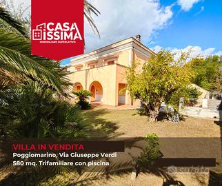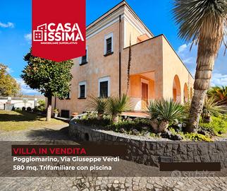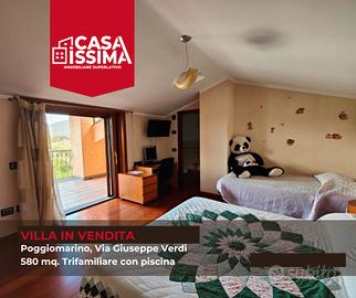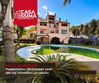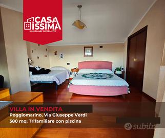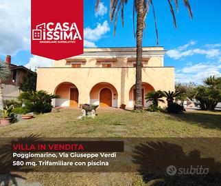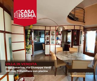 VILLA DI PREGIO, completamente ristrutturata. La villa è caratterizzata, sia negli ambienti interni che in quelli esterni, da rifiniture e arredi su misura, moderni confort contemporanei, rifiniture di extra lusso ed elementi di arredo di designer di notevole fattura. La villa si sviluppa su tre livelli: Ampio seminterrato adibito a taverna composto da ampio ingresso, salone, cucina, lavanderia, due bagni, camera , camino e forno. Primo piano con ingresso, studio, grande cucina con camino, salone triplo; Secondo piano zona notte con due camere , cabina armadio e due bagni dove sullo stesso piano si sviluppa un secondo appartamento con entrata indipendente, quest'ultimo composto da ingresso indipendente con salone e camino, cucina ,bagno e un piano superiore con due camere, cabina armadio e bagno. Nella parte esterna un giardino di circa 1500 mq, dove oltre è situata una dependance di circa 40 mq e una piscina munita di spogliatoi, bagni e docce . Tra le rifiniture sopra citate possiamo trovare: ascensore che collega tutti i piani, vasca idromassaggio in tutti i bagni , pannelli fotovoltaici, posti auto, raffrescamento e riscaldamento al pavimento, piante ed alberi ad alto fusto, pozzo irrigazione.