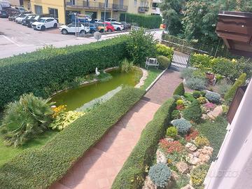 o Cortile con comoda scala d'ingresso, impreziosita da siepi di bosso potate con cura, giardino roccioso e laghetto ornamentale.