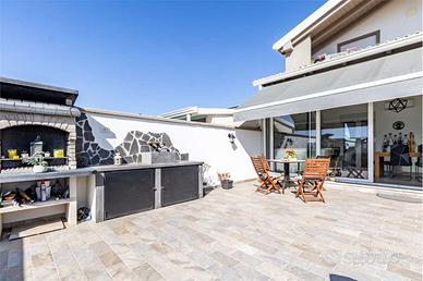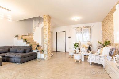 Nella zona residenziale di Barracca manna, in un tranquillo contesto caratterizzato da numerose abitazioni indipendenti, proponiamo in vendita una villetta di recente costruzione tipologia quadrivano con cortile fronte e retro. La casa, distribuita su due livelli, presenta sul fronte il cortile carrabile per posteggiare comodamente l'auto. Internamente, veniamo accolti su un luminoso e rifinito soggiorno dotato di doppia porta finestra diretta sulla veranda e di seguito al giardino retrostante di circa 80 mq organizzato con una pratica zona barbecue e con zona relax, ideale per godere di piacevoli momenti all'aria aperta. Il piano superiore, caratterizzato da tetto a spioventi con travi in legno a vista di colore bianco, è composto da tre camere da letto di cui due singole, una matrimoniale, un bagno completo di box doccia e scalda salviette e infine due balconi con zona lavanderia dai quali si può godere di un'ottima vista sulla città. La casa, rifinita in ogni dettaglio presenta infissi in pvc bianco con doppio vetro e anta a ribalta, tapparelle elettriche, split in tutti gli ambienti principali, scaldaacqua a pompa di calore, tenda solare, porta blindata, cancello elettrico, videocitofono e predisposizione per impianto fotovoltaico. RIFERIMENTO: V. Alinari_ CLASSE ENERGETICA:
