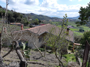 Ad 1 km da Santa Cristina Gela,vicinanze lago,immersa nel verde,panoramicissima villa su due livelli divisibile,composta da due ingressi al p.t servita da salone doppio con camino,cucina abitabile con secondo camino,bagno,salendo le scale al 1°p.altro ingresso su salone doppio,quattro camere,predisposizione 2°bagno,ripostiglio,ampio balcone con vista suggestiva,predisposizione riscaldamento autonomo,ampio terreno ben piantumato di circa 7000 mq,garage,k esterna barbeque,cisterna e pozzo.