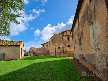 Bellissima Fattoria in Toscana nella campagna tra Pisa e Livorno, proprietà formata da antica Villa con 3 ettari di parco e 15 ettari di terreno agricolo su cui insiste l'antica Fattoria, un insieme di edifici colonici per 3000 mq, la Villa è sviluppata su 3 piani per 600 mq con affiancato edificio colonico ad uso Cantina di 220 mq con sovrastante salone ex vinsantaia di 220 mq, nel parco troviamo un annesso forno, due cancelli di ingresso, il terreno è coltivato a vigneto per 3,5 ha, 2 ha di diritti di impianto e seminativo.