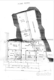 Il piano terra è composto da 3 ambienti, area destinata e garage e deposito, corpo scale ed ampia